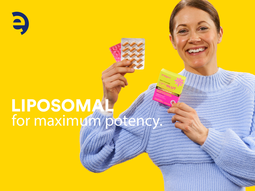 Glutathione Beadlets (Liposomal Glutathione Preparation (L-Glutathione, Stabiliser: Acacia Powder, Emulsifier: Lecithin (Sunflower), Colours: Calcium Carbonate, Beta Carotene), Hydroxypropyl Methylcellulose (Capsule Shell).