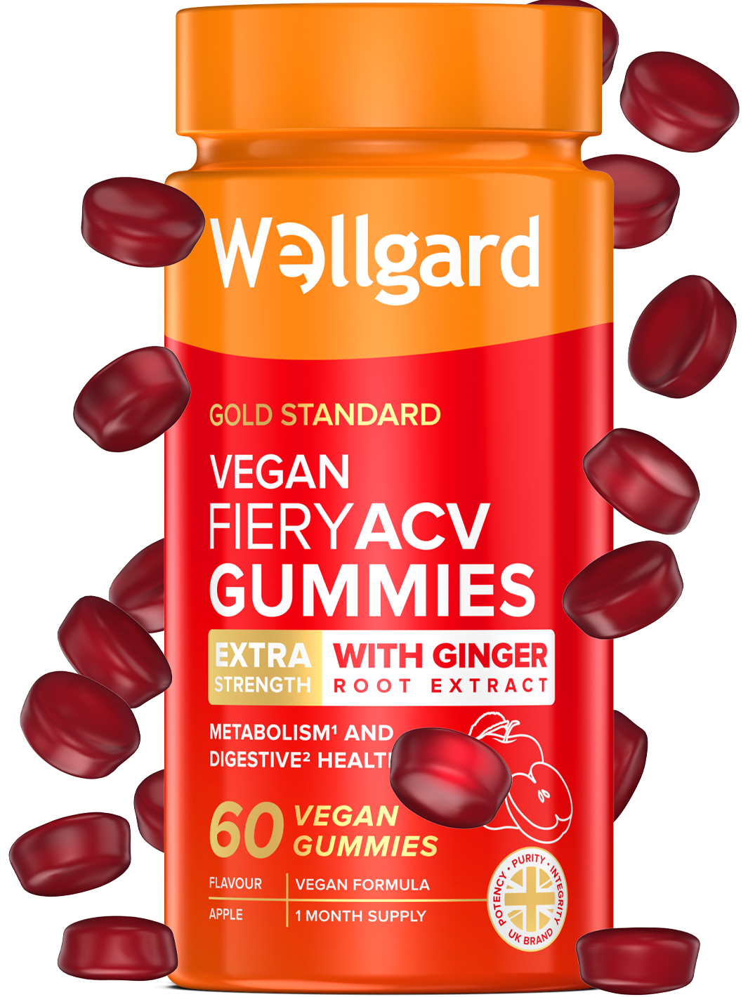 Wellgard Fiery ACV Gummies combine apple cider vinegar, ginger, vitamin C and chromium in a juicy, satisfying gummy with a gentle ginger warmth and no vinegar bite.