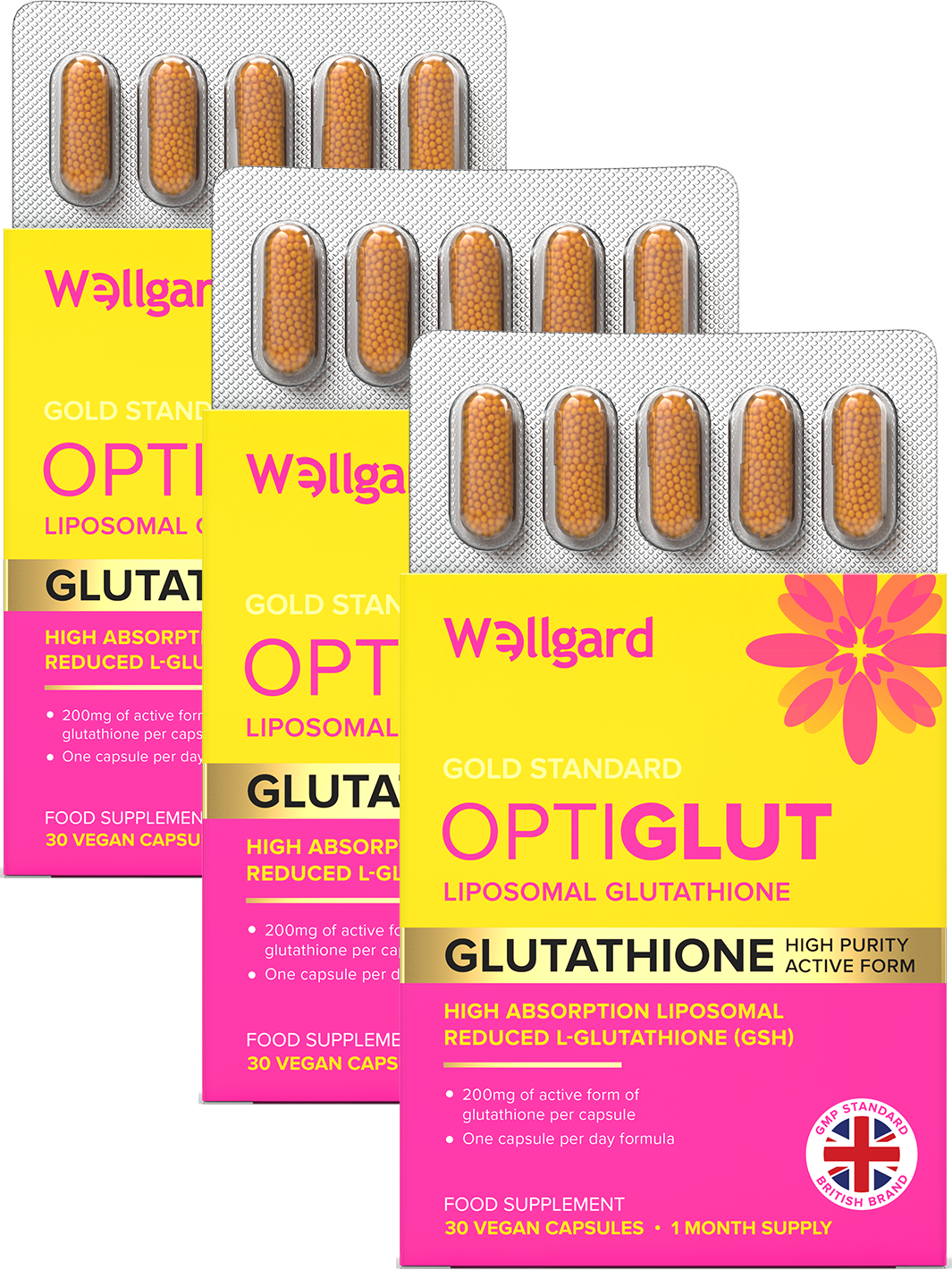 ★ HIGH ABSORPTION LIPOSOMAL GLUTATHIONE – Wellgard Optiglut delivers 2000µg of Reduced L-Glutathione (GSH) per capsule, formulated with advanced liposomal technology for maximum absorption and bioavailability.